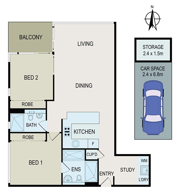 2 Bedroom + 1 Study